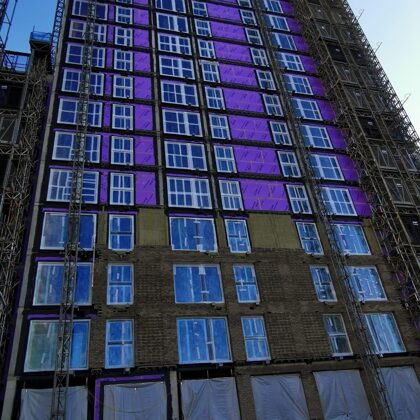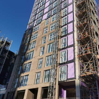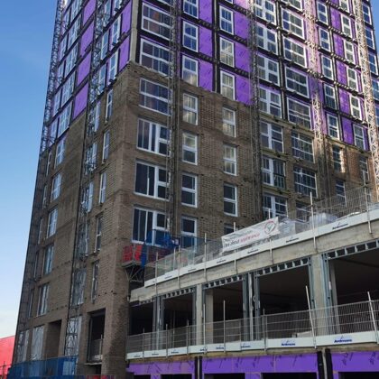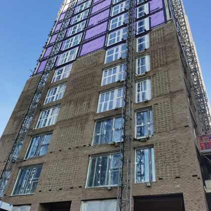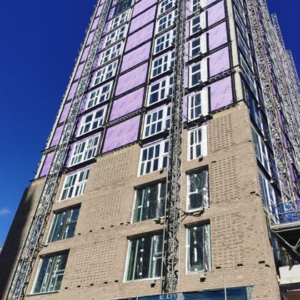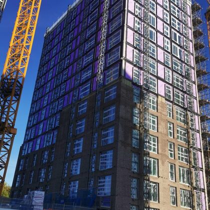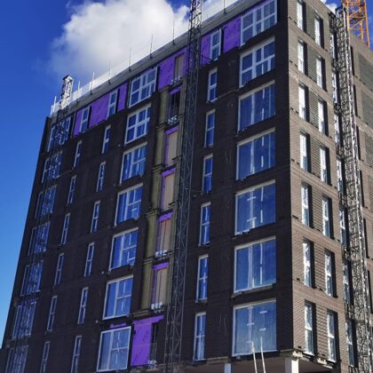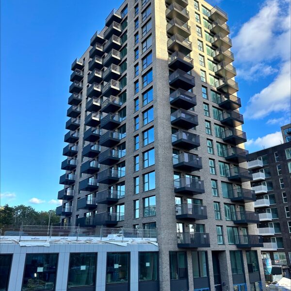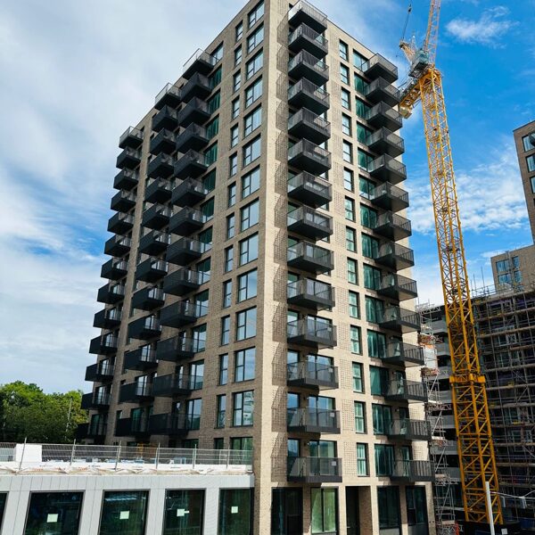 Designed by the Glenn Howells Architects, the masterplan shows 413 new homes on a vacant four-acre site by Kidbrooke railway station in the Royal Borough of Greenwich. Kegel LTD construct it for private sale, shared ownership, and affordable rent, within six new blocks featuring brick-built facades, reaching heights of up to 16 stories, clustered around landscaped courtyards. Kegel took a massive part of it delivering the whole external package on time. Our duties include SFS, Windows, and Masonry. This is a complex project, and we have had to call on all of our skills and experience in delivering major schemes on logistically constrained sites, next to railways and local residents, to develop a practical well-considered approach to building and dealing with delivery at the same time.